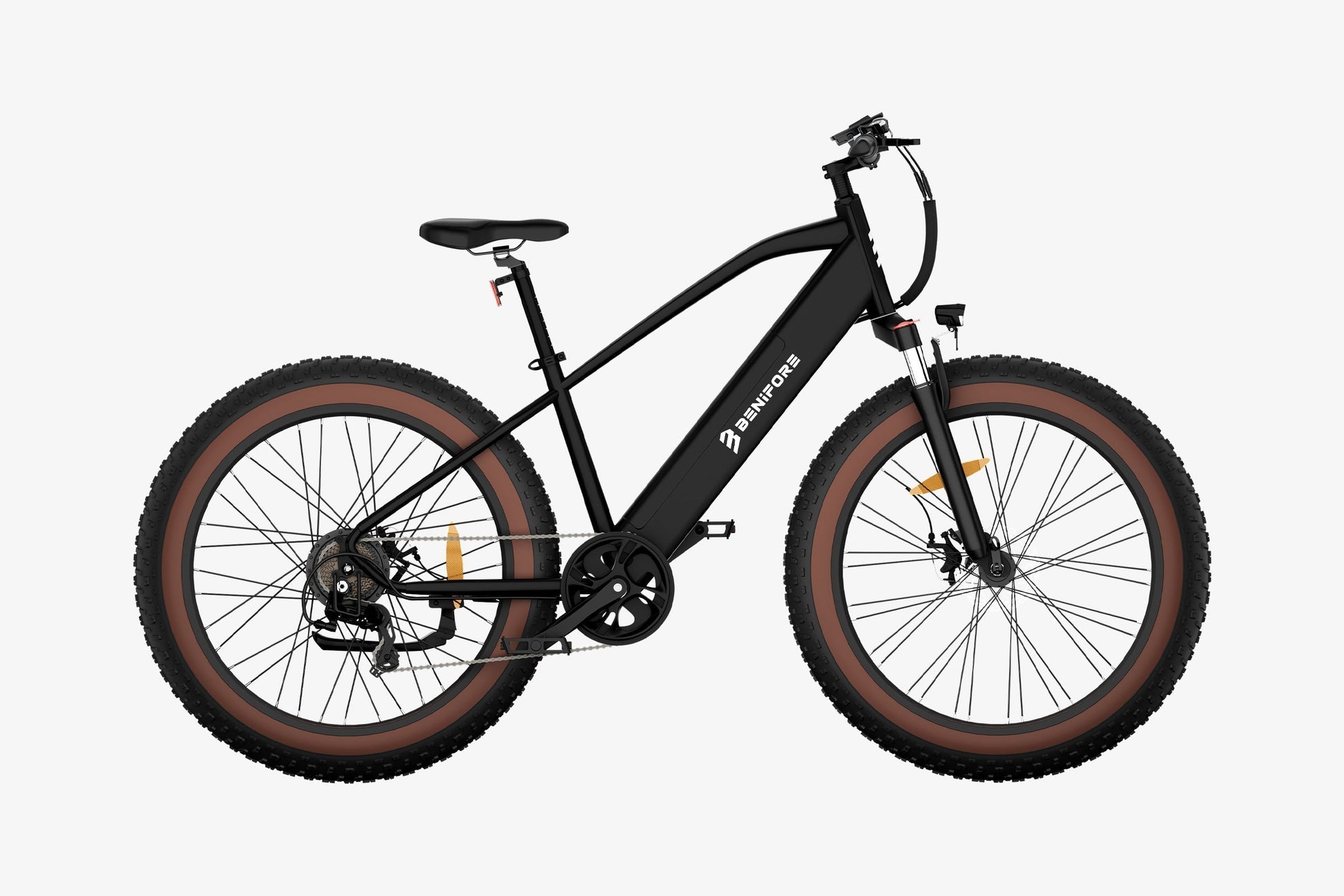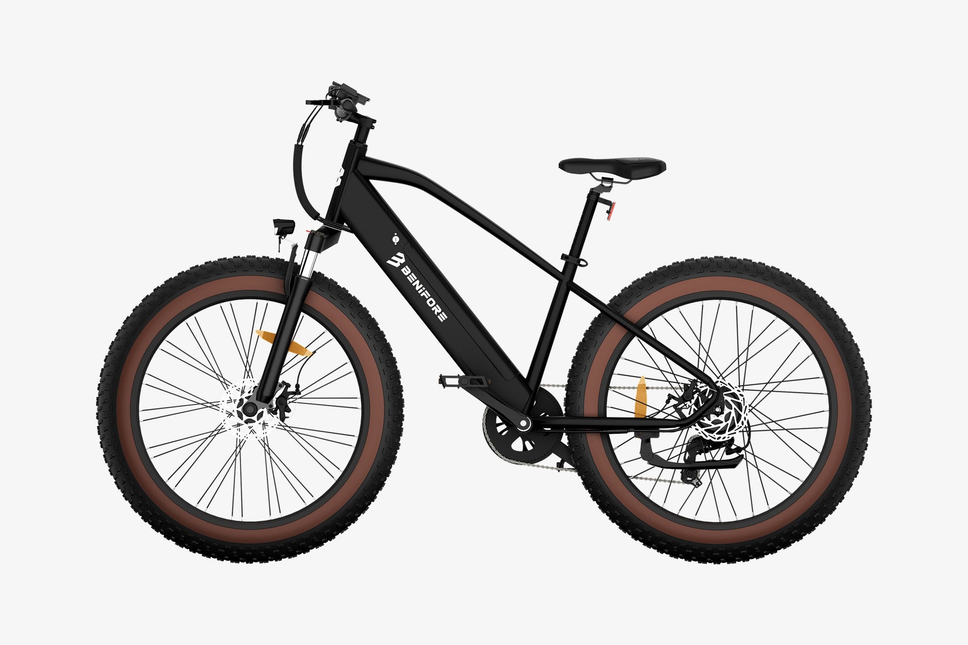 Esta bicicleta eléctrica todoterreno para adultos cuenta con una suspensión delantera hidráulica de aluminio de gran respuesta que absorbe los impactos y las vibraciones durante la conducción. El sistema de frenos de disco doble reduce las distancias de frenado, incluso en condiciones climáticas extremas, garantizando una conducción segura. Sus siete marchas ajustables facilitan la selección de la relación de transmisión ideal para una conducción cómoda.
