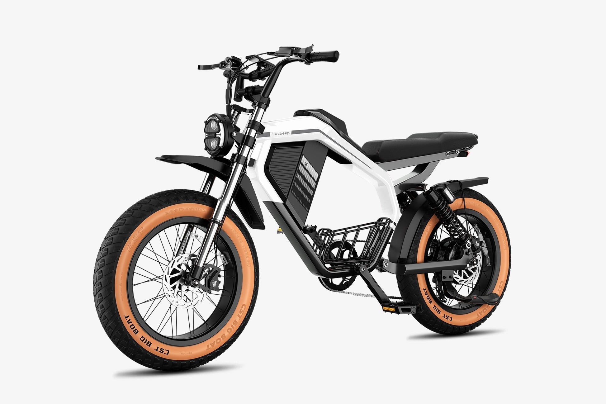 La M5 Max está construida con un cuadro de alta resistencia y soporta un peso de hasta 180 kg. Los neumáticos anchos de 20" x 4.0" mejoran el agarre y la estabilidad, permitiéndote afrontar fácilmente arena, nieve, barro y senderos rocosos. Ya sea para ir al trabajo, explorar o afrontar desafíos todoterreno extremos, este modelo está diseñado para ofrecer el máximo rendimiento.